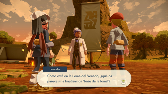 El Profesor Lavender siempre está disponible en todos los Campamentos Base para actualizar el progreso de la Pokédex de Hisui y volver a Villa Jubileo.