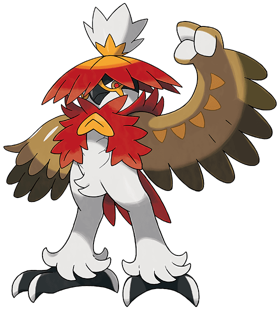 Las patas de Decidueye son muy fuertes, tanto que sus patadas pueden tumbar árboles y partir piedras. Su estrategia clásica es volar hacia sus oponentes para asestarles una patada y, después, atacarles con las flechas que esconde en sus alas.