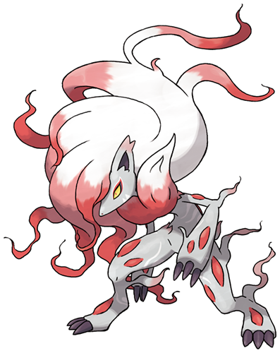 El poder rencoroso que emana del pelaje largo y enredado de Zoroark de Hisui proyecta ilusiones terroríficas y puede causar dańo físico a sus enemigos tanto por dentro como por fuera. Estas ilusiones tienen tal expresión de maldad y de odio hacia todas las cosas que se dice que quienes las ven enloquecen de terror.