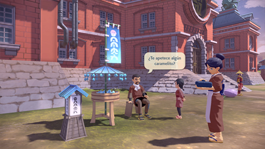 En Villa Jubileo hay muchos servicios e instituciones útiles, como el puesto de trueque, donde puedes intercambiar Pokémon con otros jugadores.