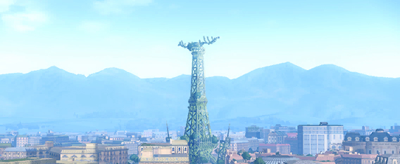 Una torre de casi 300 m de altura situada en Ciudad Luminalia, en el corazón de Kalos. La torre situada en esta plaza de Ciudad Luminalia, en el corazón de Kalos, albergaba una máquina de 2000 ańos de antigüedad.