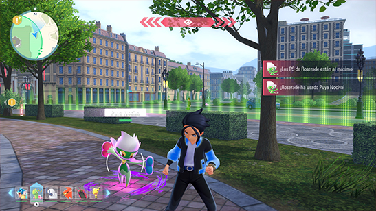 » El dańo que recibe el jugador de los ataques depende del Nivel del Pokémon y del ataque que haya usado. El jugador puede esquivar los ataques con volteretas.