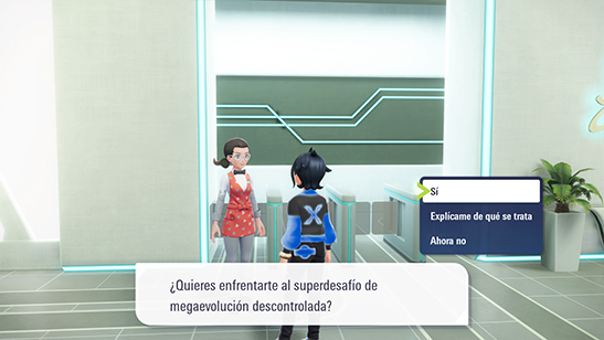 Cuando superes la Misión Principal 41 (El que quita) desbloqueas el simulador de combates contra Pokémon descontrolados con Megaevolución Descontrolada en la sede de Quastelar S.A.