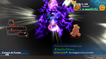 Megaevolución:El concepto de la megaevolución apareció con la sexta generación de Pokémon y ya estuvo presente en Pokémon Mundo megamisterioso.Cuando avances en el juego podrás encontrar un tipo de semilla bastante especial: la Semilla Plétora. Al consumirla, el Pokémon megaevoluciona y, si no puede hacerlo, se vuelve pletórico. En cualquier caso, el Pokémon se vuelve mucho más fuerte, hace siempre críticos e ignora habilidades y desventajas de tipo durante algún tiempo. Puede haber varias megaevoluciones en el mismo piso. No hay ningún tipo de límite al respecto.