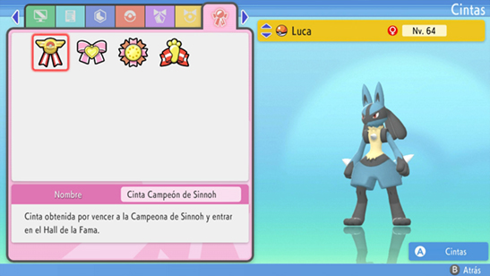 Los Pokémon que uses en Pokémon Diamante Brillante y Perla Reluciente pueden conseguir Cintas que los hagan destacar.