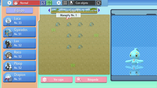 - Ve a la Caja del PC que quieres clonar y coloca el cursor encima de un Pokémon de la Caja.