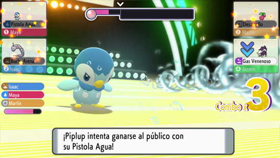 Si consigues encadenar el movimiento de gala de tu Pokémon con el de otro participante, realizas un combo y consigues más puntos de gala.