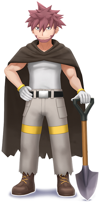 Líder de Gimnasio de Ciudad Pirita especialista en Pokémon de tipo Roca. Si lo derrotas obtienes la Medalla Lignito (permite usar Golpe Roca fuera de combate), sus Sellos y 5 MT76 Trampa Rocas.