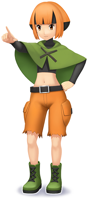 Líder de Gimnasio de Ciudad Vetusta especialista en Pokémon de tipo Planta. Si la derrotas obtienes la Medalla Bosque (permite usar Corte fuera de combate), sus Sellos y 5 MT86 Hierba Lazo.