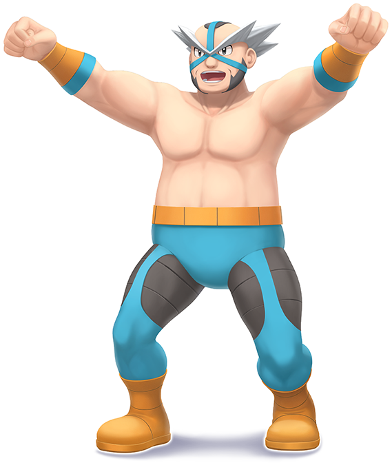Líder de Gimnasio de Ciudad Rocavelo especialista en Pokémon de tipo Lucha. Si la derrotas obtienes la Medalla Adoquín (permite usar Vuelo fuera de combate), sus Sellos y 5 MT60 Puńo Drenaje.