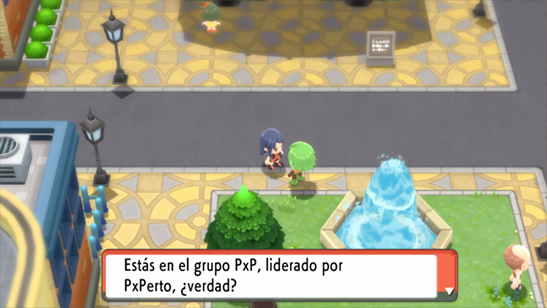Un chico junto a la fuente de Ciudad Jubileo te permite crear o unirte a un grupo de jugadores en la Sala Unión.