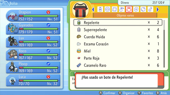 - Puedes usar Vuelo para ir a cualquier zona de Sinnoh rápidamente. También puedes usar el resto de movimientos ocultos, como Surf.