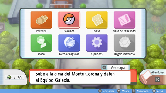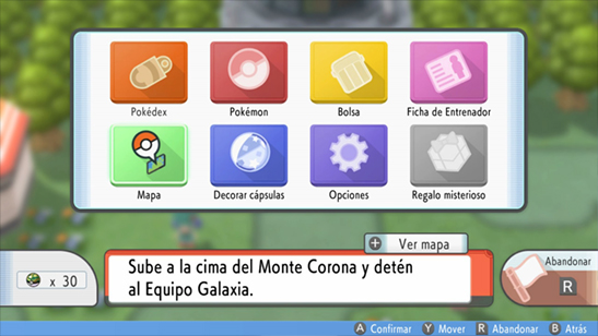- A continuación debes pulsar 4 veces B para salir del menú del Pokémon. Si lo hiciste bien, verás el menú principal superpuesto en el mapa. No pulses B más veces porque desactivarás el error.
