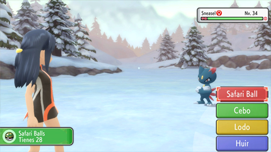 Con el Modo Safari activado puedes ir lanzando Safari Ball a los Pokémon de todo Sinnoh: