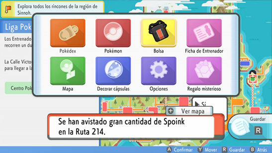 - Presiona (+) para abrir simultáneamente el Mapa y el menú (+) de objetos clave.