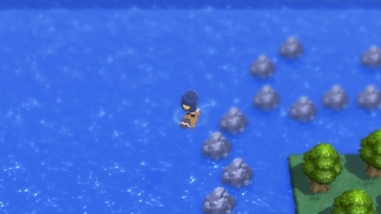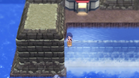 - Finalmente llegarás a un punto en el que no puedes avanzar. Presiona A para usar Surf de nuevo y avanza hacia la derecha.