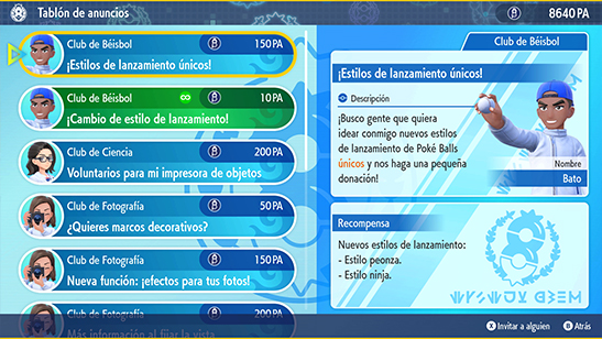 En el Club de Béisbol puedes aprender estilos de lanzamiento de Poké Ball con la ayuda de su líder Bato: