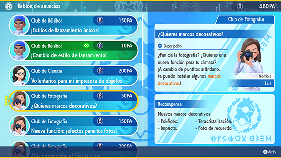 En el Club de Fotografía puedes mejorar tu cámara de fotos (ver Personalización) con la ayuda de su líder Luz: