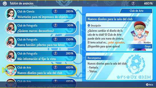 En el Club de Arte puedes obtener nuevos diseńos para la sala del Club de la Liga con la ayuda de su líder Goyo: