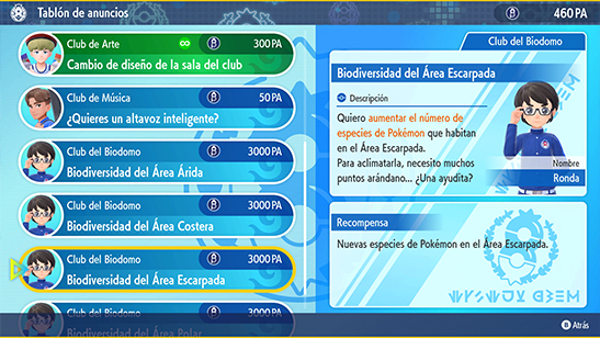 - Club del Biodomo: Aumentar las especies de Pokémon que aparecen en el Biodomo.