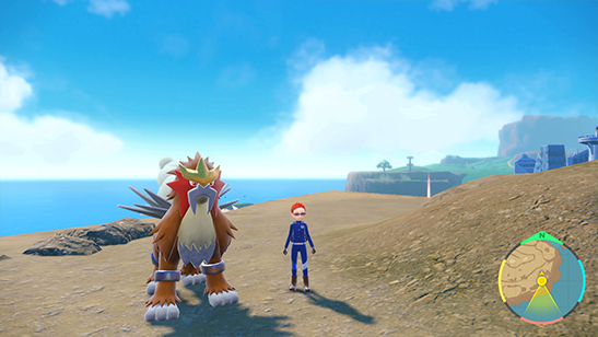 Entei es un nombre que tengo irremediablemente asociado a mi juventud... En mis aventures por Paldea, me topé con él de pura casualidad, żsabes? Nos encontrábamos en una zona minera, donde el suelo tenía más agujeros que un colador. Pues a Entei se la traía al pairo, ˇporque hasta los hoyos más grandes los cruzada de un salto el tío! Como yo no quería irle a la zaga, pues corrí a toda pastilla para estar a la par. ˇBueno soy yo! Y vaya si valió la pena, porque al final pudimos contemplar juntos el mar.