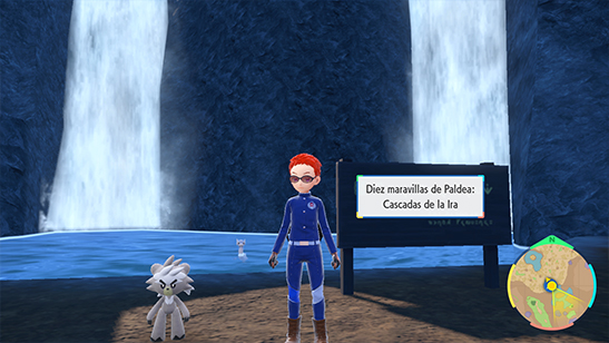 Anda que no me trae recuerdos de mi juventud ni nada el nombre de Latios... Concretamente, de aquella vez que me topé con él por casualidad al noreste de Paldea. Mira que no hablo su idioma, pero me pareció entender que me decía "żA que no me sigues?". Y claro, yo venga a perseguirlo, hasta el punto de escalar por paredes rocosas y escabrosas... En cuanto quise darme cuenta, había llegado a una pequeńa laguna circundada por barrancos. Seguro que era un lugar que muy pocos conocen.