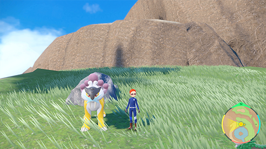 Galletano comparte también su conocimiento sobre estos Pokémon Legendarios contigo, así como sus heroicos encuentros, ayudándote a averiguar su lugar de aparición en Paldea.