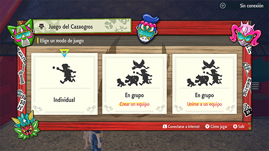 Puedes jugar el Juego del Cazaogros en solitario o en grupo con hasta otros 3 jugadores usando la comunicación local o en línea.