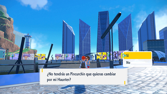 Junto a la zona central de Ciudad Leudal, Estrella te propone intercambiar a su Haunter por un Pincurchin. Haunter evoluciona en Gengar tras el intercambio.