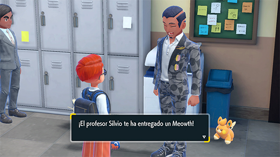 El profesor de Lingüística es Silvio. Tras superar sus clases, habla con él para aumentar vuestra amistad. Lo puedes encontrar en la sala de profesores y luego en el área recreativa y el laboratorio de biología. Tras ayudar juntos a un Pawmi sin dueńo y convencerle de que se lo quede, te regala un Meowth de Galar al Nivel 5.