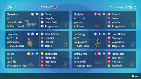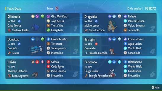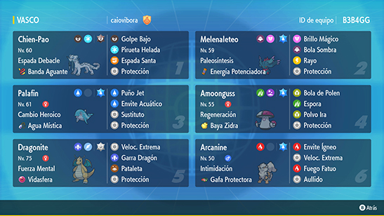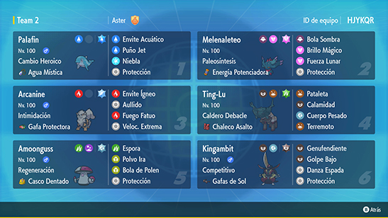 - Equipo: Equipo de Combate que contenga entre 4 y 6 Pokémon.