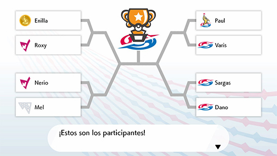 Vuelta a la Liga de Pokémon Espada y Escudo:Una vez hayas superado por primera vez la Liga Pokémon podrás volver a organizar una Liga Pokémon y superar las tres rondas para conservar tu título de Campeón. Puedes invitar a uno de entre 10 personajes distintos cuando consigas sus Tarjetas de Liga muy raras. El resto del torneo se configurará con personajes al azar de entre los otros personajes que hayas desbloqueado y 15 Aspirantes que aparecen desde el principio.