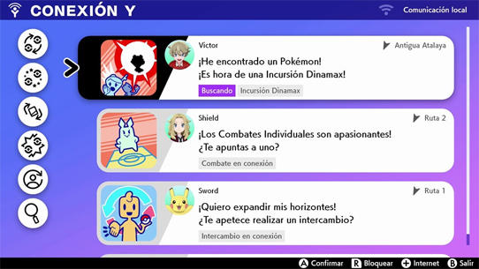La Conexión Y es la forma de conectarse con otros jugadores, a través de la conexión local o de Internet mediante una suscripción a Nintendo Switch Online. Puedes acceder al menú de conexión en cualquier momento pulsando el Botón Y, donde se pueden ver todos los jugadores conectados.