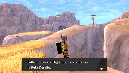 Accediendo desde Ruta Desafío tienes 2 Diglett girando a la derecha: uno al borde del acantilado y otro cerca del Nido Dinamax. Hay otros 2 Diglett más al norte y al sur del puente que lleva a Cueva Contienda.