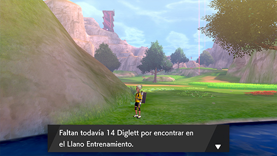 Sube la cuesta hacia la Torre Pugna. En el desvío derecho hay otro Diglett en la rampa, ya cerca del Nido Dinamax. Vuelve al centro de la rampa, y ahora baja las escaleras. Antes de las siguientes escaleras hacia Llano Entrenamiento hay un Diglett cerca de una roca.