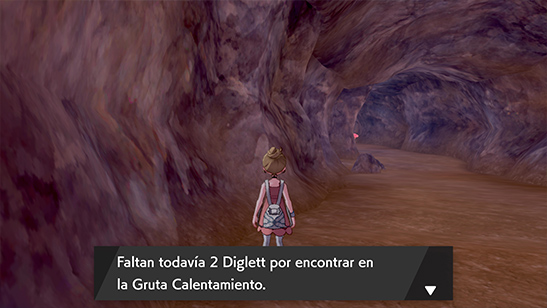 Accediendo desde Gruta Calentamiento hay un Diglett al poco de entrar, en la pared de la izquierda junto a un Nido Dinamax. Sube pegado a la pared para encontrar otros 2 Diglett junto a una roca: uno a medio camino y otro al norte.