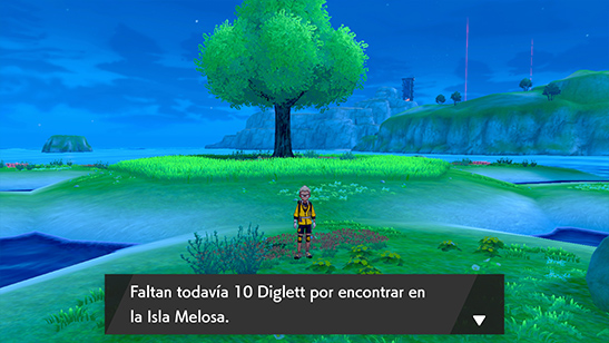 En la isla grande se encuentran 4 Diglett: el primero a la derecha del árbol del norte (junto al mar), el segundo entre el árbol grande y el Árbol de Bayas, el tercero al final de la pequeńa senda hacia el sur, y el cuarto cerca del otro árbol junto a un Nido Dinamax.
