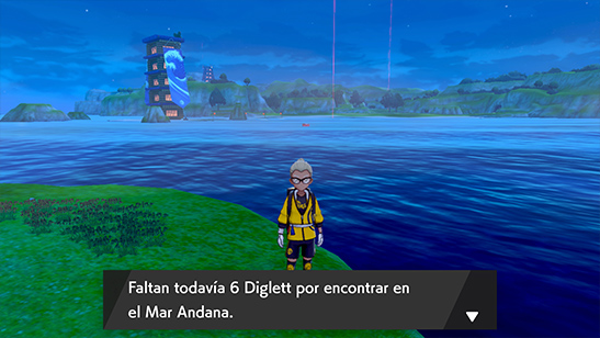 Luego ve hacia la playa: en la hierba a la izquierda de unas flores rojas hay otro Diglett, y al norte de la playa junto al mar hay otro.
