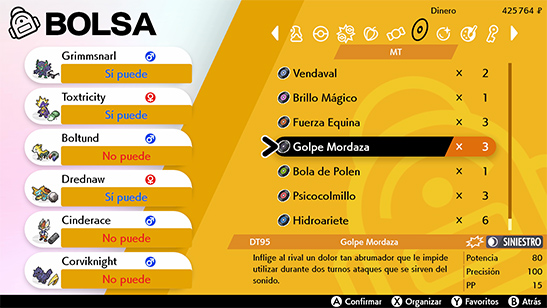 » Para ello es necesario que el Pokémon conozca 3 movimientos o menos y por tanto pueda aprender más movimientos sin necesidad de confirmación. Recuerda que puedes recurrir al Olvido de Movimientos.