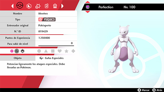 Experiencia acumulada del Pokémon y puntos para subir de Nivel (ver Experiencia) |