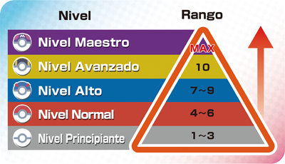- Nivel: Los Rangos tienen asociado un Nivel, aumentando la dificultad de los combates al subir de Rango ya que todos los Entrenadores habrán demostrado su destreza previamente.