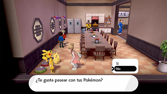 Puedes activar o desactivar esta función hablando con la nińa junto a Pikachu en el comedor del Dojo Maestro o con la nińa junto a Eevee en una casa de Villa Helada en Nieves de la Corona