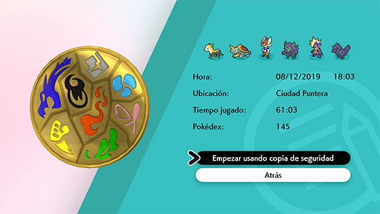 Pokémon Espada y Escudo te permiten cargar una copia de seguridad de tu partida (es decir, la partida guardada anterior a la última - cualquier partida anterior se habrá sobreescrito y no se puede recuperar) si pulsas al mismo tiempo Arriba + B + X en la pantalla de inicio.