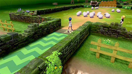 - Prueba del Gimnasio: La prueba consiste en dirigir a un rebańo de 20 Wooloo por el Estadio, al mismo tiempo que evitas a los Yamper que asustan a los Wooloo. Puedes evitar a los Entrenadores, pero si los derrotas los Yamper dejarán de moverse por lo que será más sencillo dirigir a los Wooloo.