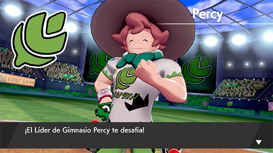 - Líder del Gimnasio: Tras superar la prueba te enfrentas al Líder Percy. Percy dinamaxiza a su Eldegoss en cuanto puede. Su equipo es el siguiente: