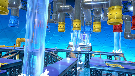 - Prueba del Gimnasio: La prueba consiste en abrir y cerrar tuberías de agua con interruptores de colores rojo, amarillo y azul. Deberás resolver el puzzle y derrotar a varios Entrenadores para avanzar.