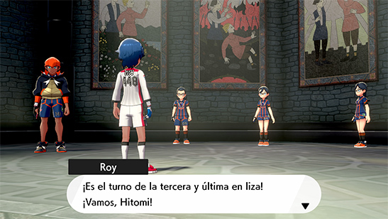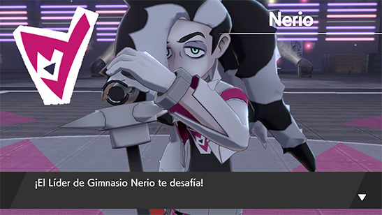 - Líder del Gimnasio: Tras superar la prueba te enfrentas al Líder Nerio. Nerio se ha opuesto a trasladar su Gimnasio a un nodo energético, por lo que no usa la Energía Dinamax. Su equipo es el siguiente:
