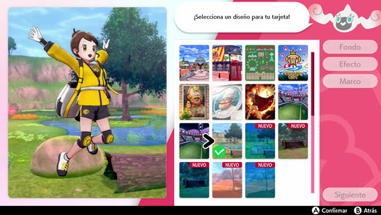 Conforme avances en tu aventura en la Isla de la Armadura se irán ańadiendo nuevos fondos, efectos y marcos que no estaban disponibles en Pokémon Espada o Pokémon Escudo. Puedes modificar tu Tarjeta de Liga con el Tarjetomatón de la Rotomi.
