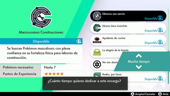 Poké Encargos:En la Región de Galar es muy común que las personas y los Pokémon trabajen codo con codo. Muchas empresas y universidades solicitan la ayuda de los Pokémon mediante los llamados Poké Encargos.En esta sección os explicamos el funcionamiento de los Poké Encargos: