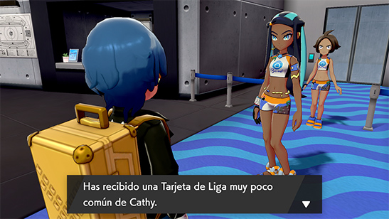 En el Gimnasio de Pueblo Amura os encontráis a Cathy, con quien tendréis que enfrentaros al siguiente Pokémon Dinamax. Al vencer, recibirás la Tarjeta de Liga muy poco común de Cathy.